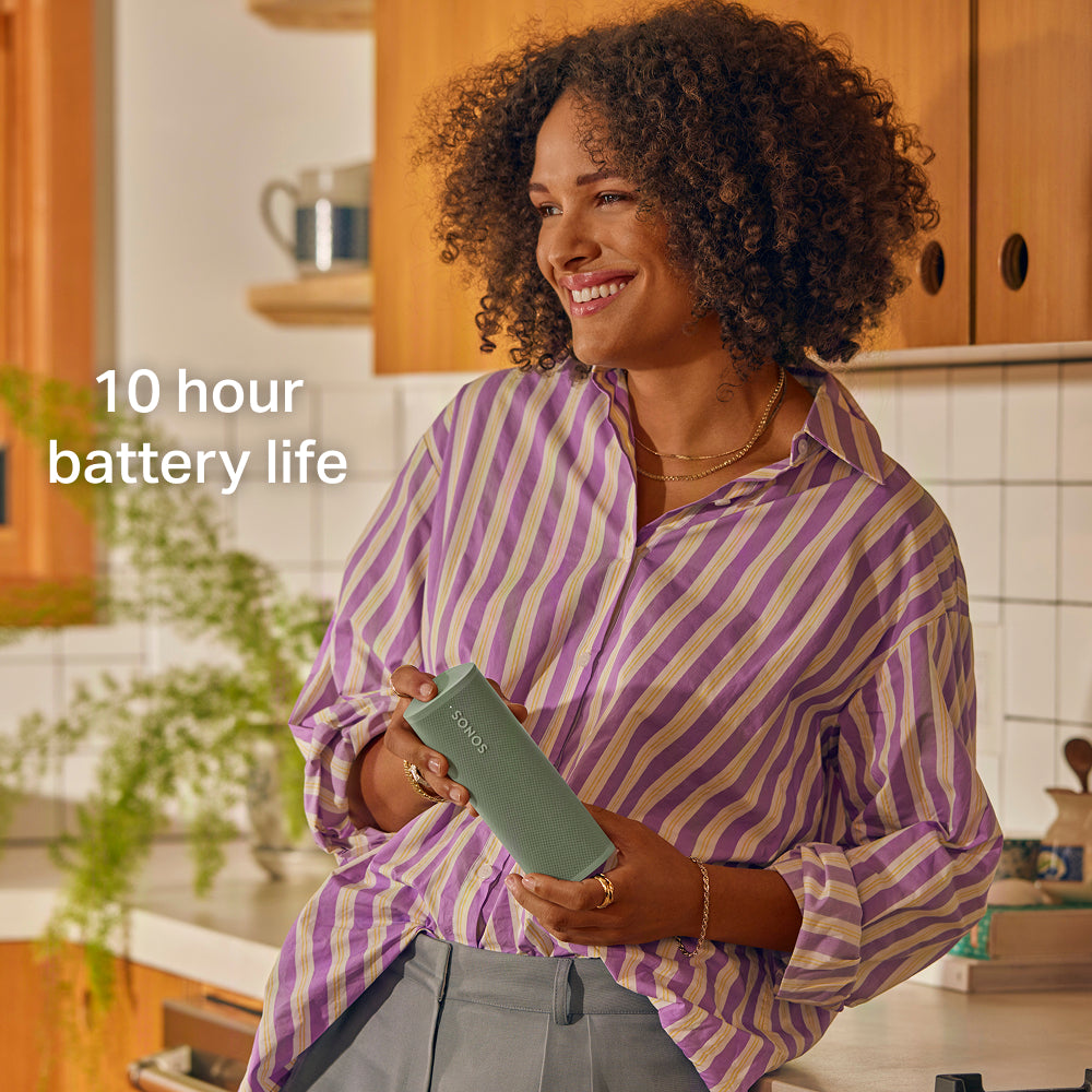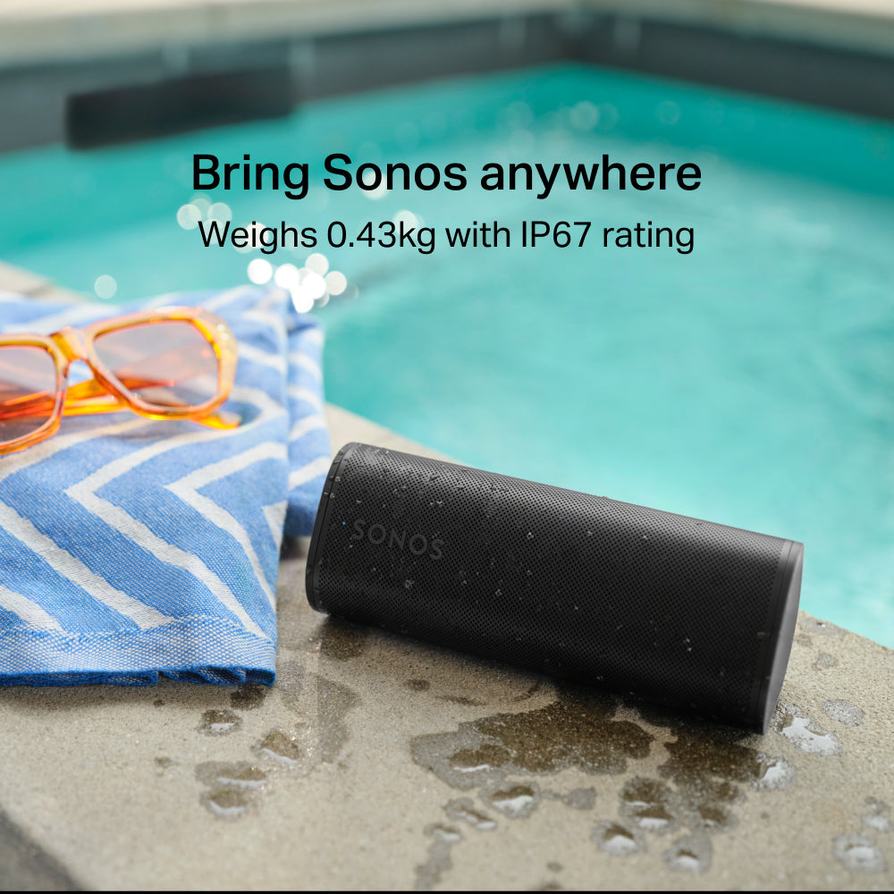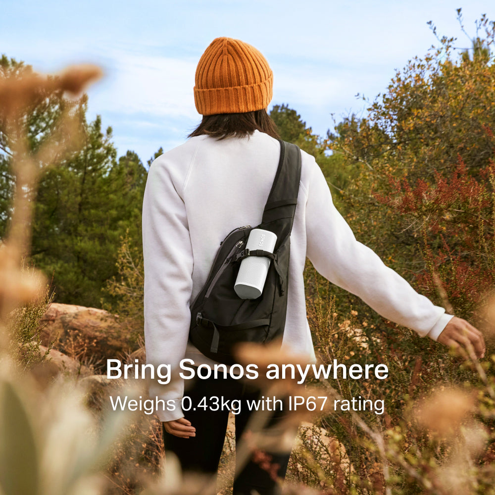 Bring Sonos sound to the backyard, beach, trail, or slopes. Durably constructed, impressively lightweight, and IP67 waterproof and dust-proof, Roam 2 is built to perform outdoors.